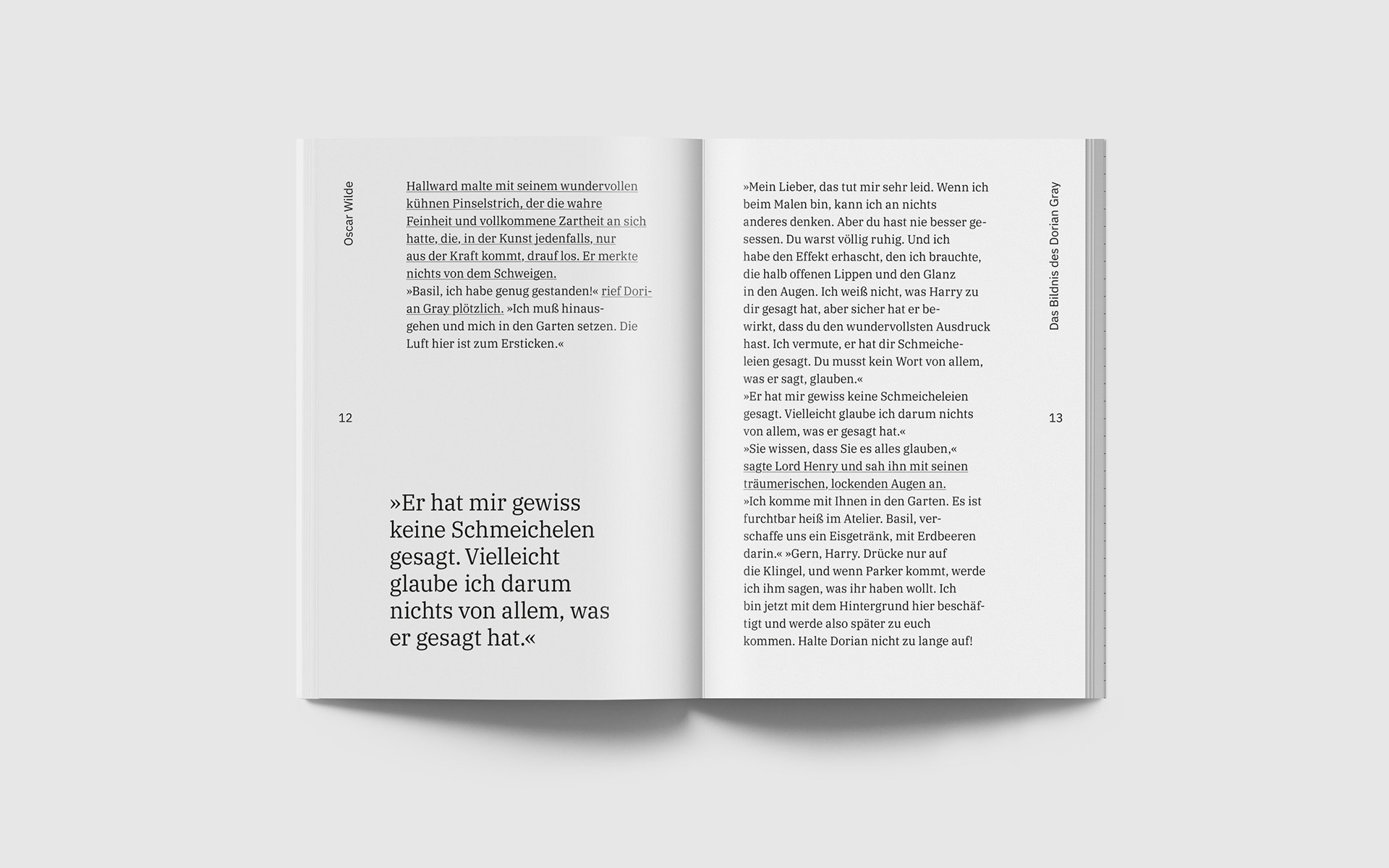 Der hierfür gewählte Text stammt aus dem Roman „Das Bildnis des Dorian Grey“ des irischen Schriftstellers Oscar Wilde.